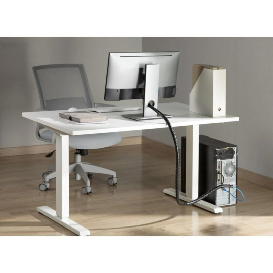 Trubice tohoto organizéru kabelů je vyrobena z měkčeného plastu, který zaručuje extrémní flexibilitu. Snadno se přizpůsobí tvaru pracovní desky, zatočí za roh nebo třeba obejde nohu stolu. Místo tvrdé trubky, která si žije vlastním životem, tak máte po ruce loajálního pomocníka, který vám poslouží přesně tam, kde ho potřebujete.