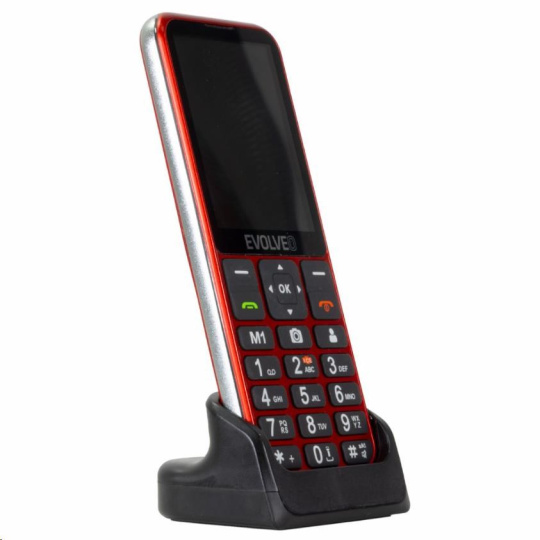EVOLVEO EasyPhone LT, mobilný telefón pre seniorov s nabíjacím stojanom (červená farba)