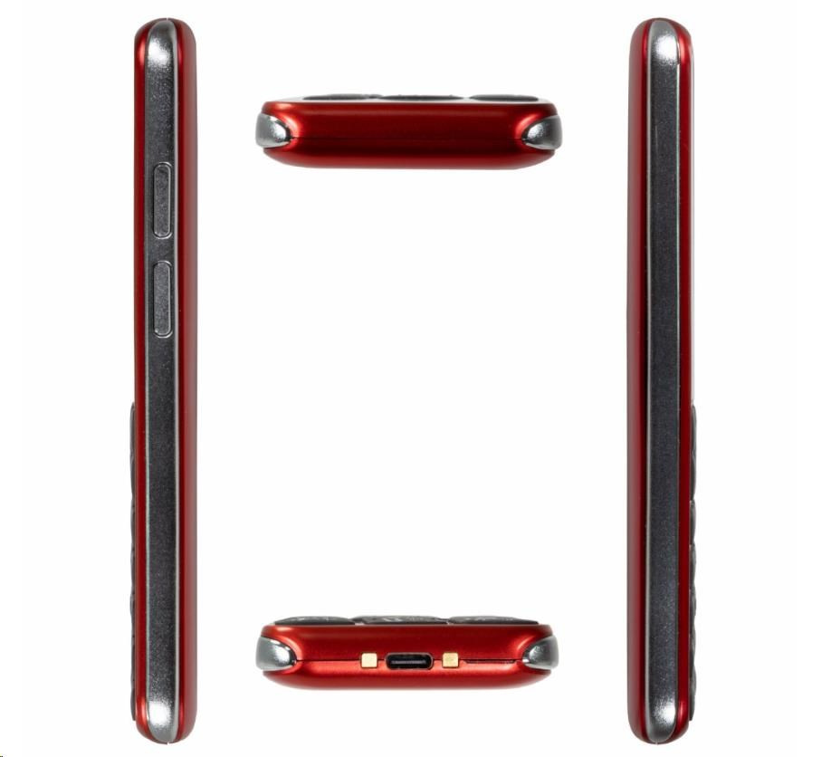 Farebný displej 2,8", 4G sieť, SOS tlačidlo s GPS lokalizáciou polohy, 2000 kontaktov, Dual Nano SIM, fotoaparát s bleskom, FM rádio s vestavenou anténou, fotokontakty, Bluetooth, microSDHC, výkonná svietidlo, nabíjacia kolíska, USB-C, Li-Ion batéria 1200 mAh