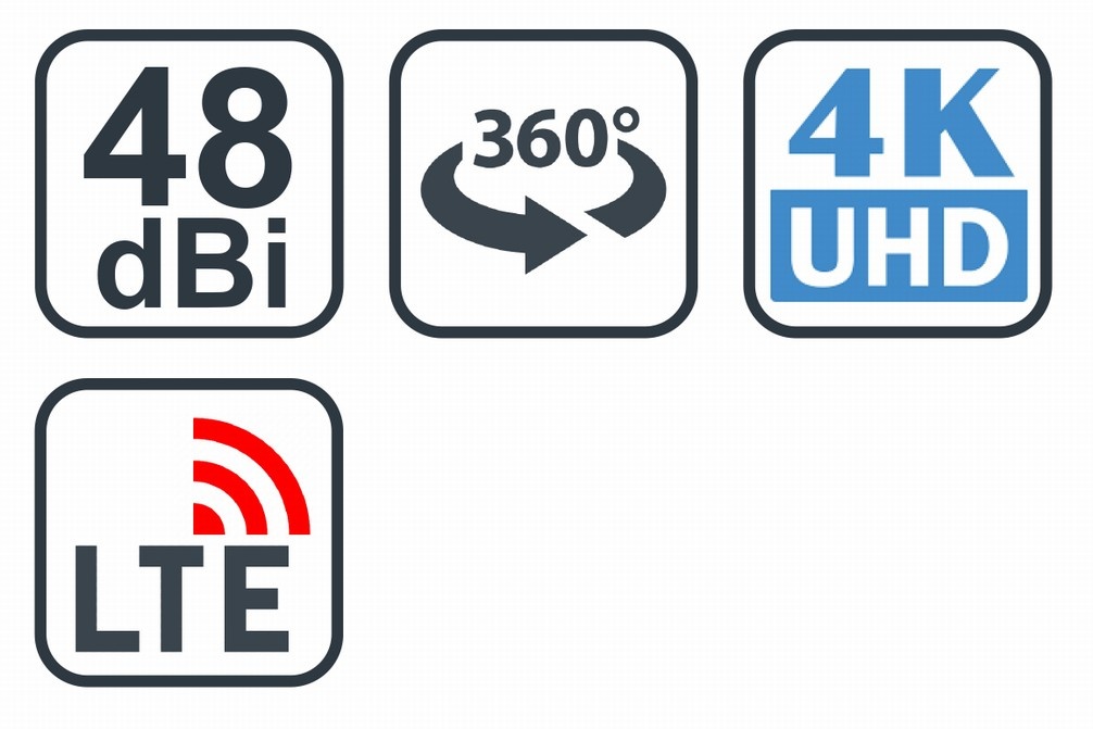 Nová väčšia verzia obľúbenej vonkajšej antény s prijímacím uhlom 360° s káblom 10m a redukciou IEC female/F male. Nová verzia má priemer 380 mm.
