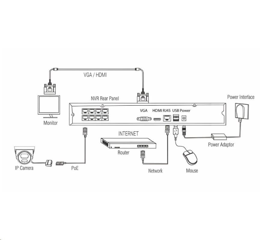Konektory 1xWAN, 2× USB, VGA, HDMI, 8x LAN/POE port pre kamery