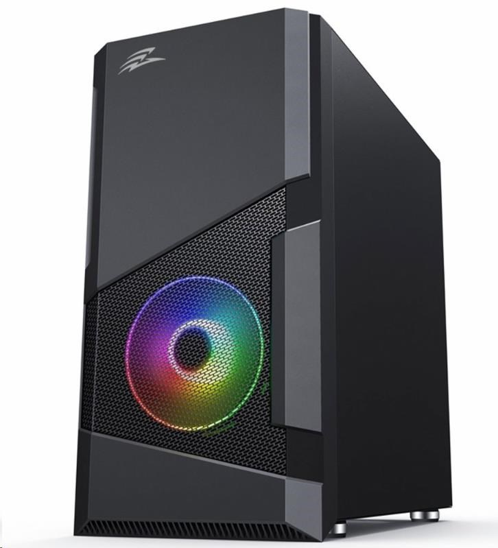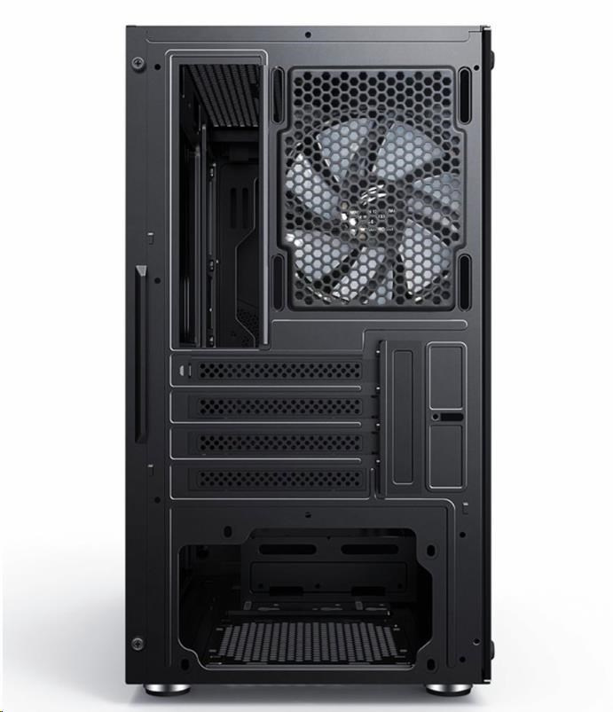 Herné mATX skrinka s inštalovanými RGB rainbow 120 mm ventilátormi a bočnicou z temperovaného skla. Skrinka je určená pre základné dosky podporujúce platformu Intel aj AMD. Okrem formátu mATX je kompatibilná aj s formátom Mini ITX. Zdroj je umiestnený v spodnej časti skrinky. Spodná mriežka je osadená vysúvacím prachovým filtrom. Ovládanie ventilátorov je možné pomocou pripojenia ku základnej doske.