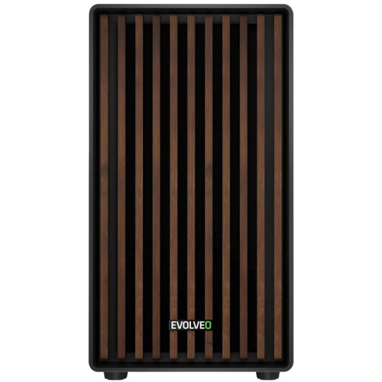 EVOLVEO Panthera, skříň mATX, 3x ARGB ventilátor 120mm, dřevěný přední panel + skleněná bočnice