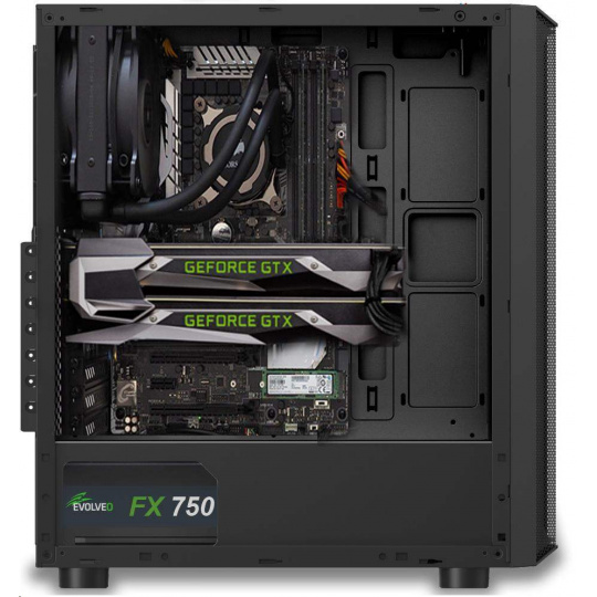 Gaming ATX midi tower s nainštalovanými 4x RGB rainbow 120 mm ventilátormi, ktoré sa ovládajú LED tlačidlom na hornej strane ovládacieho panelu. Predná mriežka cez celý predný kryt zabezpečuje účinné prúdenie vzduchu. Ľavá strana skrine obsahuje bočnicu z tvrdeného skla. Skriňa je určená pre základné dosky podporujúce platformy Intel aj AMD. Okrem formátu ATX je kompatibilný aj s formátmi Micro ATX a Mini ITX. Napájací zdroj je umiestnený v spodnej časti skrine. Spodná mriežka je vybavená výsuvným prachovým filtrom, horný prachový filter je pripevnený magnetmi a je odnímateľný.