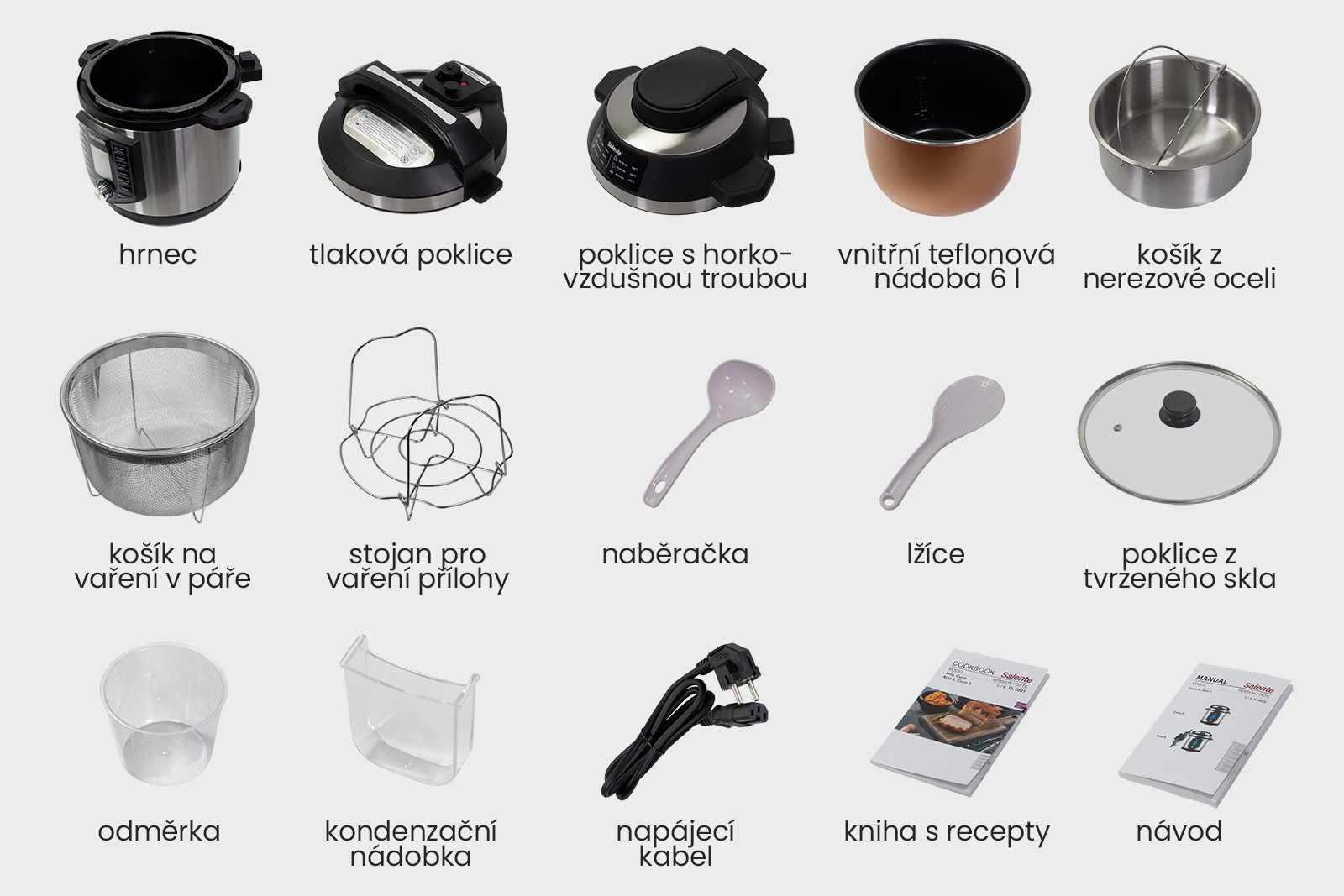 Ovládací panel hrnca aj horkovzdušnej rúry sú v českom jazyku a sú jednoduché a intuitívne. Okrem preddefinovaných programov je možné použiť vlastné nastavenie pre tlak a čas prípravy jedla. U horkovzdušnej rúry je možné nastaviť aj teplotu.