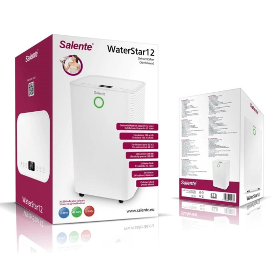 Salente WaterStar12 je skutočným hrdinom v boji proti vlhkosti. Tento moderný odvlhčovač môžete využiť v akejkoľvek miestnosti do veľkosti 60 m2 – efektívne si poradí s problémami, ako sú plesne, zatuchnutý vzduch, orosené okná alebo nadmerná vlhkosť spôsobená prehrievaním.
