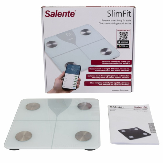 Salente SlimFit, osobní diagnostická fitness váha, Bluetooth, bílá