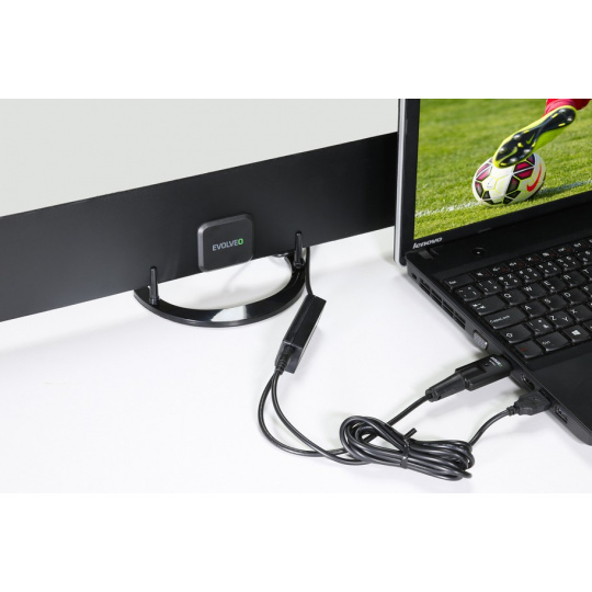 Elegantná vnútorná anténa na príjem digitálnej aj analógovej TV. Zosilňovač antény je možné napájať dvoma spôsobmi vďaka USB káblu. Napájanie pomocou adaptéra 230V a ďalej napájanie z USB konektora. Druhý spôsob ocení používateľ, ktorý chce sledovať TV napríklad na NB pomocou USB tunera. Anténu je možné prilepiť sadu 3M obojstranných pásikov na stenu, nábytok alebo umiestniť do podstavca.
