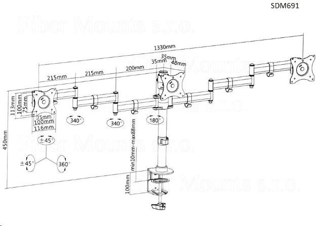 Fiber Mounts SDM691 - stolní držák na 3 monitory