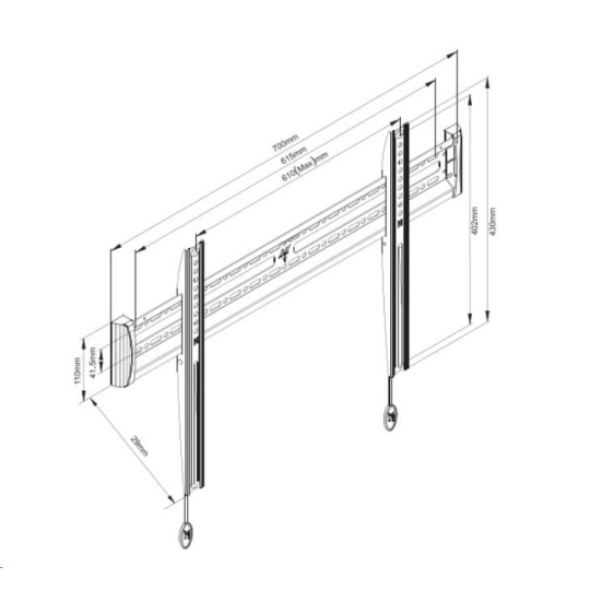 Fixný držiak TV NB C3F Fixný držiak na TV 43-80", VESA 75x75 až 600x400, vzdialenosť TV od steny 29mm, systém click-connect pre automatické upevnenie TV na držiak, nosnosť 56kg Fixný držiak prémiovej kvality na LCD LED TV 43-80". Držiak podporuje VESA štandardy 100x100 až 600x400, vzdialenosť TV od steny je 29mm. Vďaka systému click-connect sa televízor po zavese na držiak automaticky upevní proti nechcenému vysadeniu, uvoľnenie je pomocou táhel. Na držiak je možné zavesiť všetky typy a značky televízorov s hmotnosťou až 56kg. Fixný držiak LCD LED plazma TV NB C3-F Technické údaje: nosnosť 56kg na televízory s uhlopriečkou 43" až 80" podporuje VESA štandard 100x100 až 600x400mm vzdialenosť od steny 29mm automatické zabezpečenie televízie proti vysadeniu - systém click-connect výborná kvalita, veľmi pevný a úplne spoľahlivý držiak na TV jednoduchá a rýchla inštalácia balenie obsahuje sadu skrutiek, vrutov a hmoždiniek záruka 5 rokov Nástenný fixný držiak na TV 43-80" v prémiovej kvalite - VESA 100x100 až 600x400, vzdialenosť od steny 29mm, systém click-connect, nosnosť 56kg NB C3F Fixný držiak na televízie NB C3F podporuje VESA štandardy: VESA 100x100 VESA 200x100 a 100x200 VESA 200x200 VESA 300x100 a 100x300 VESA 300x200 a 200x300 VESA 300x300 VESA 400x200 a 200x400 VESA 400x300 a 300x400 VESA 400x400 VESA 600x200 VESA 600x400