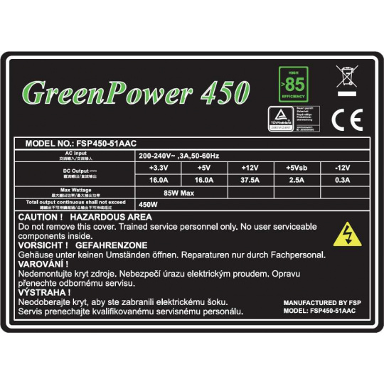 Napájacie zdroje ATX GreenPower 85+, ktoré vyrába renomovaná spoločnosť Fortron FSP Group, sú najlepšou alternatívou za výhodnú cenu pre váš domáci, kancelársky a herný počítač. Vďaka dlhoročným skúsenostiam vo výrobe a znalostiam technológie napájania vám poskytnú najlepšie riešenie pre vašu domácnosť a kanceláriu. Spoľahlivé, účinné a cenovo dostupné napájacie zdroje GreenPower 85+ sú ideálnou voľbou pre váš počítač.
