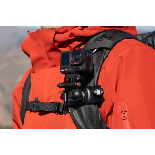 Pripevnite kameru na popruh batohu pre hands-free zábery z pohľadu prvej osoby. Ideálne pre turistiku a outdoorové aktivity. Pevné uchytenie bez proklzu, odnímateľná guľová hlava s 360° rotáciou pre ľahké prepínanie orientácie. Zaoblené hrany pre pohodlie. Kompatibilné s popruhmi do šírky 7 cm. Kompatibilné s Insta360 Ace Pro 2, GO 3S, X5/ X4/ X3/ ONE X2, Insta360 Ace Pro, Insta360 Ace, GO 3.