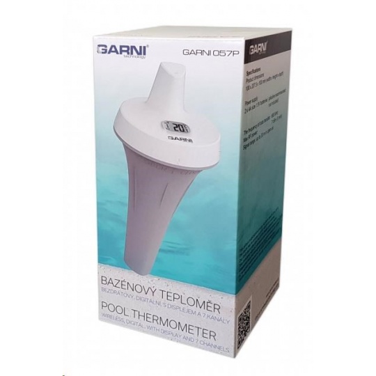 Sedmikanálové bazénové bezdrôtové čidlo na meranie teploty, určené pre meteostanicu GARNI 2055 Arcus, GARNI 1055 Arcus (s firmware 1.05 a novším), GARNI 975, GARNI 1025 Arcus a chytrý digitálny teplomer s vlhkomerom GARNI 419T. Dôrazne neodporúčame použitie v mraze. vodotesné, stupeň krytia IPX7 meranie teploty displej 24 x 12 mm 7 kanálov farba biela s šedou