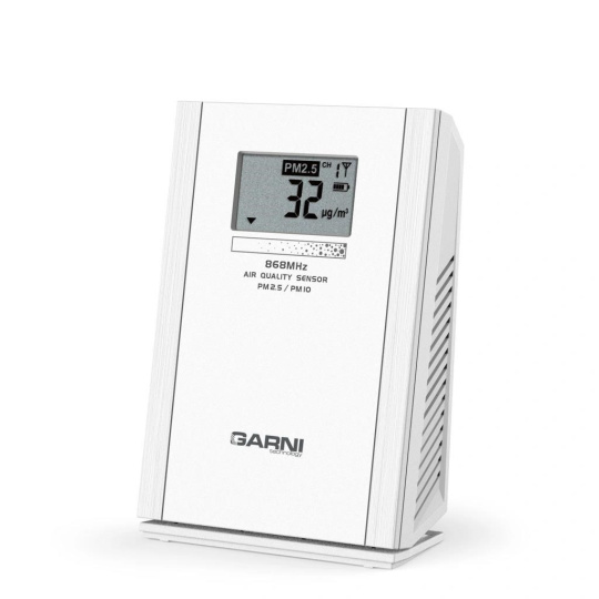 Bezdrôtové čidlo merania vnútornej kvality ovzdušia - pevných častíc PM2.5 a PM10, určené pre merač kvality ovzdušia GARNI 204 OneCare a meteorologickú stanicu GARNI 1085 Arcus a GARNI 2040 Arcus (pri modeli GARNI 2040 Arcus možnosť použitia len jedného čidla).
