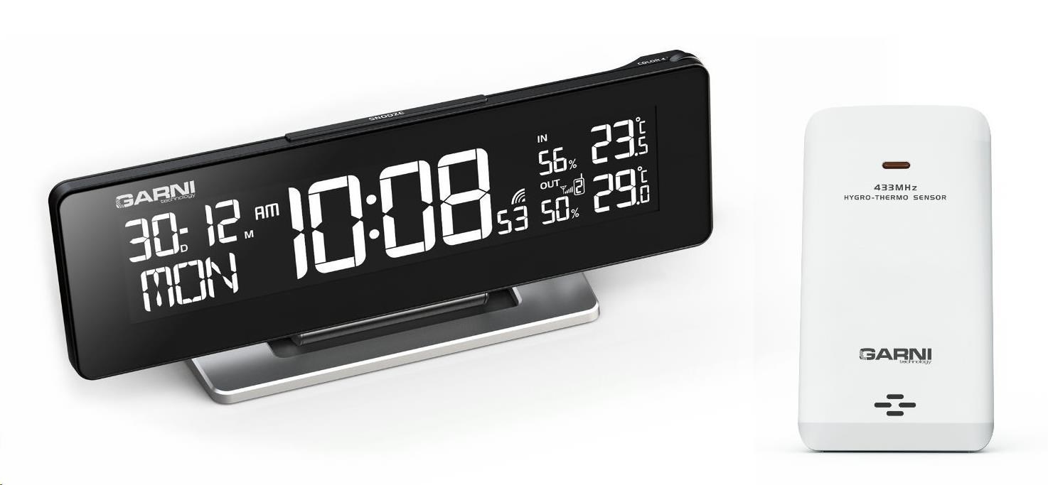 GARNI 185 Arcus - digitální budík s teploměrem a vlhkoměrem