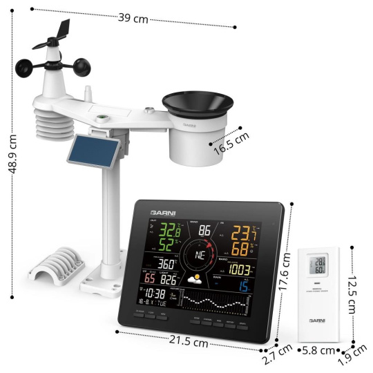 Integrovaný bezdrôtový senzor 7-v-1 GARNI 1NG meria vonkajšiu teplotu a relatívnu vlhkosť, rýchlosť a smer vetra, dažďové zrážky, UV index a slnečné žiarenie a dáta sú odosielané do hlavnej jednotky až do vzdialenosti 150 m (v otvorenom priestore). Napájanie zabezpečuje vestavený kapacitor, ktorý je nabíjaný pomocou vestaveného solárneho panela. Batéria slúži ako záložný zdroj. Senzory sú úplne zostavené a kalibrované tak, aby bola inštalácia čo najjednoduchšia.