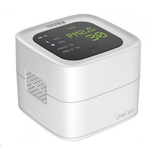Chytrý merač kvality vzduchu GARNI 210T OneCare s WiFi modulom meria a zobrazuje na svojom farebnom TFT LCD displeji namerané hodnoty kvality vzduchu, teplotu a relatívnu vlhkosť vo vnútorných priestoroch. Je kompatibilný s platformou chytré domácnosti Tuya IOT. Umožňuje nahrávať namerané hodnoty online, zobrazovať ich v aplikácii Tuya Smart a prostredníctvom tejto aplikácie automaticky spúšťať iné zariadenia. Na meranie pevných častíc (PM), teploty a relatívnej vlhkosti sú použité švajčiarske snímače SENSIRION.