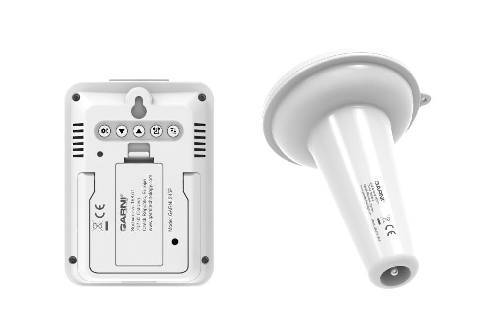 Hlavná jednotka digitálneho teplomera GARNI 245P je kompatibilná s bezdrôtovými čidlami GARNI 063H (na displeji hlavnej jednotky však bude zobrazená iba teplota). Digitálny teplomer s bazénovým čidlom GARNI 245P je teda možné použiť spolu s meteorologickými stanicami rady Precise.