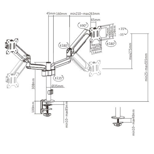 - Stolný držiak monitora s dvojitým ramenom monitora