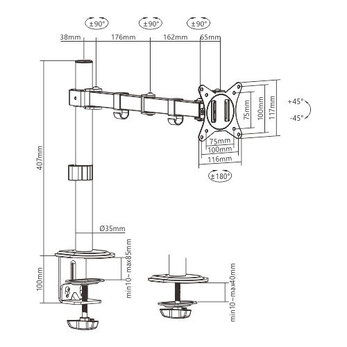 • Stolový držiak monitora s jedným ramenom monitora