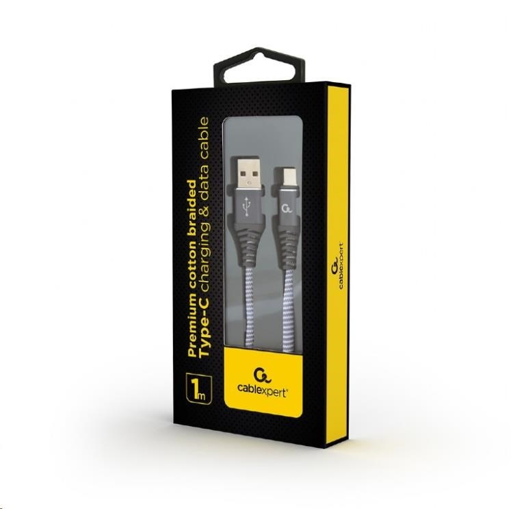 GEMBIRD CABLEXPERT USB 2.0 Kábel AM na typ C (AM/CM), 1 m, opletený, sivý a biely, blister, PREMIUM KVALITA