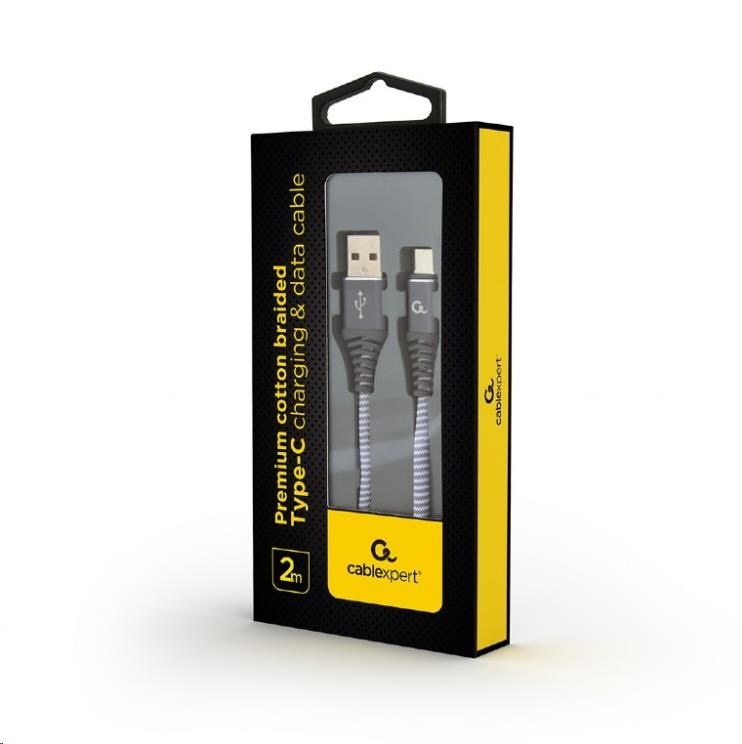 GEMBIRD CABLEXPERT USB 2.0 Kábel AM na typ C (AM/CM), 2 m, opletený, sivý a biely, blister, PREMIUM KVALITA