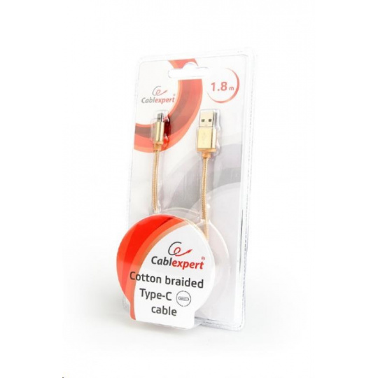 GEMBIRD CABLEXPERT kábel USB na USB-C (AM/CM), 1,8 m, opletený, zlatý, blister