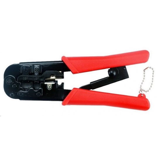 Univerzálny modulárny lisovací nástroj Vhodný pre všetky modulárne zástrčky 8P8C, 6P6C a 6P4C Praktický račňový mechanizmus - pre spoľahlivé výsledky lisovania..
