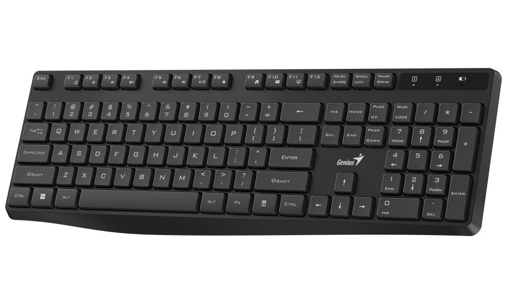 Bezdrôtová klávesnica je navrhnutá tak, aby používateľovi poskytla maximálny komfort pri každodennej práci. Ergonomický sklon spolu s klávesmi typu chiclet umožňuje efektívne a pohodlné písanie. Pripojenie je realizované prostredníctvom technológie 2,4 GHz a miniatúrneho USB prijímača. Napájanie majú na starosti dve AAA batérie, ktoré sú súčasťou balenia.