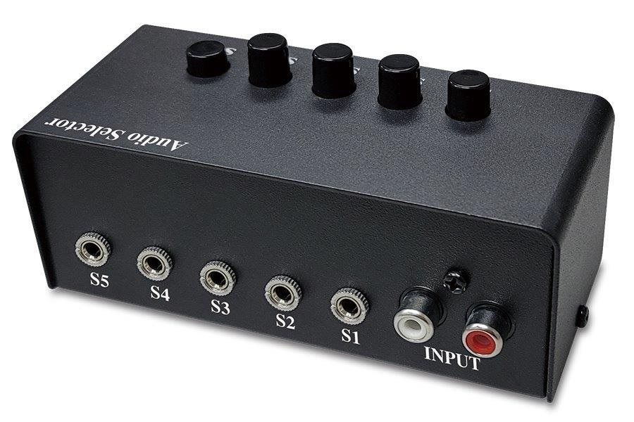 Prepínač pre až 5 stereofónnych audio výstupov, napríklad reproduktorov, pripojených k jednému zariadeniu na vstupe. Prepínanie medzi výstupmi prebieha stlačením jedného z tlačidiel na hornej strane. Kovové prevedenie zabezpečí dlhú životnosť. Prepínač nevyžaduje žiadne dodatočné napájanie.
