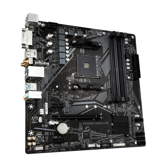GIGABYTE MB Sc AM4 A520M DS3H AC, AMD A520, 4xDDR4, 1xDP, 1xHDMI, 1xDVI-D, WiFi, mATX