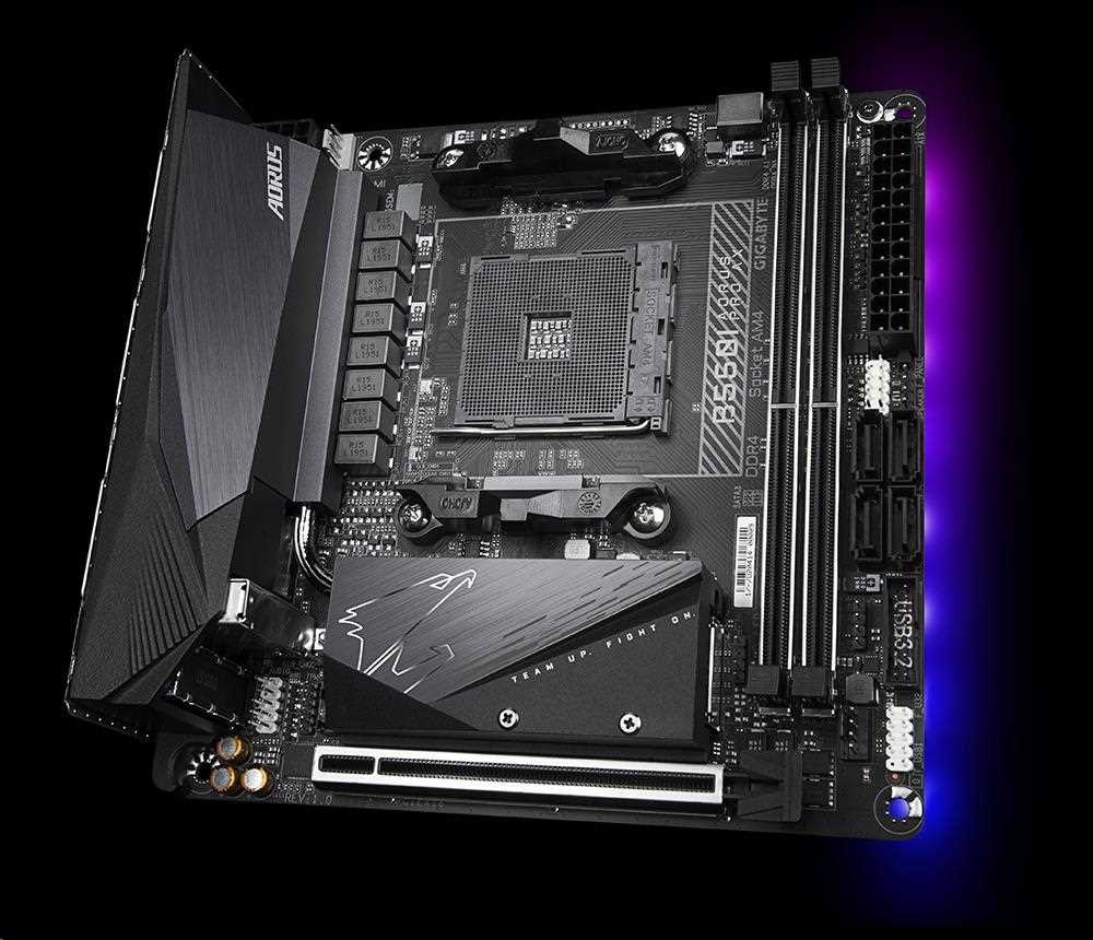 Základná doska AMD B550 Mini-ITX AORUS s priamym 8-fázovým digitálnym VRM, pokročilým tepelným dizajnom s rozšíreným chladičom VRM, tepelnou základnou doskou, duálnym PCIe 4.0/3.0 M.2 s tepelnou ochranou, Intel® WiFi 6 802.11ax, 2.5GbE LAN, RGB FUSION 2.0, Q-Flash Plus