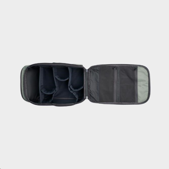 - Obsahuje 1 policu po celej šírke, 2 ľavé a pravé priečinky na fotoaparát, 3 malé priečinky a 1 nastaviteľný popruh na príslušenstvo.