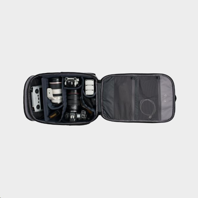 Vďaka funkciám, ako sú vnútorné vrecká, externý slot na fľašu s vodou a integrovaná brašna na prenášanie statívu, je organizácia bezproblémová a intuitívna. Prispôsobiteľný systém vnútorných priečok umožňuje fotografom prispôsobiť výbavu každodenným potrebám.