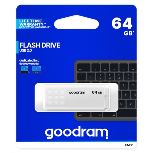 Pamäť UME2 je dostupná v kapacite 64 GB. Použité komponenty umožňujú čítanie rýchlosťou až 20 MB/s a zápis od 5 MB/s. Rovnako ako na všetky ostatné USB flash disky GOODRAM sa na UME2 vzťahuje doživotná záruka výrobcu.