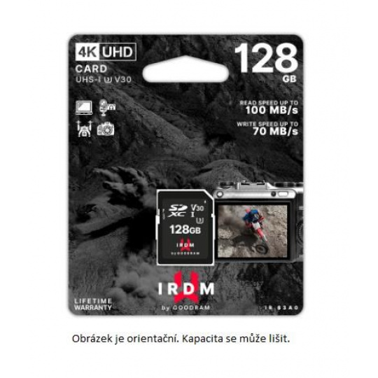 IRDM UHS-I U3 CARD brings high performance and reliability for everyone who wants to shoot 4K and slow motion videos or shoot high quality JPEG and RAW pictures in fast burst modes.