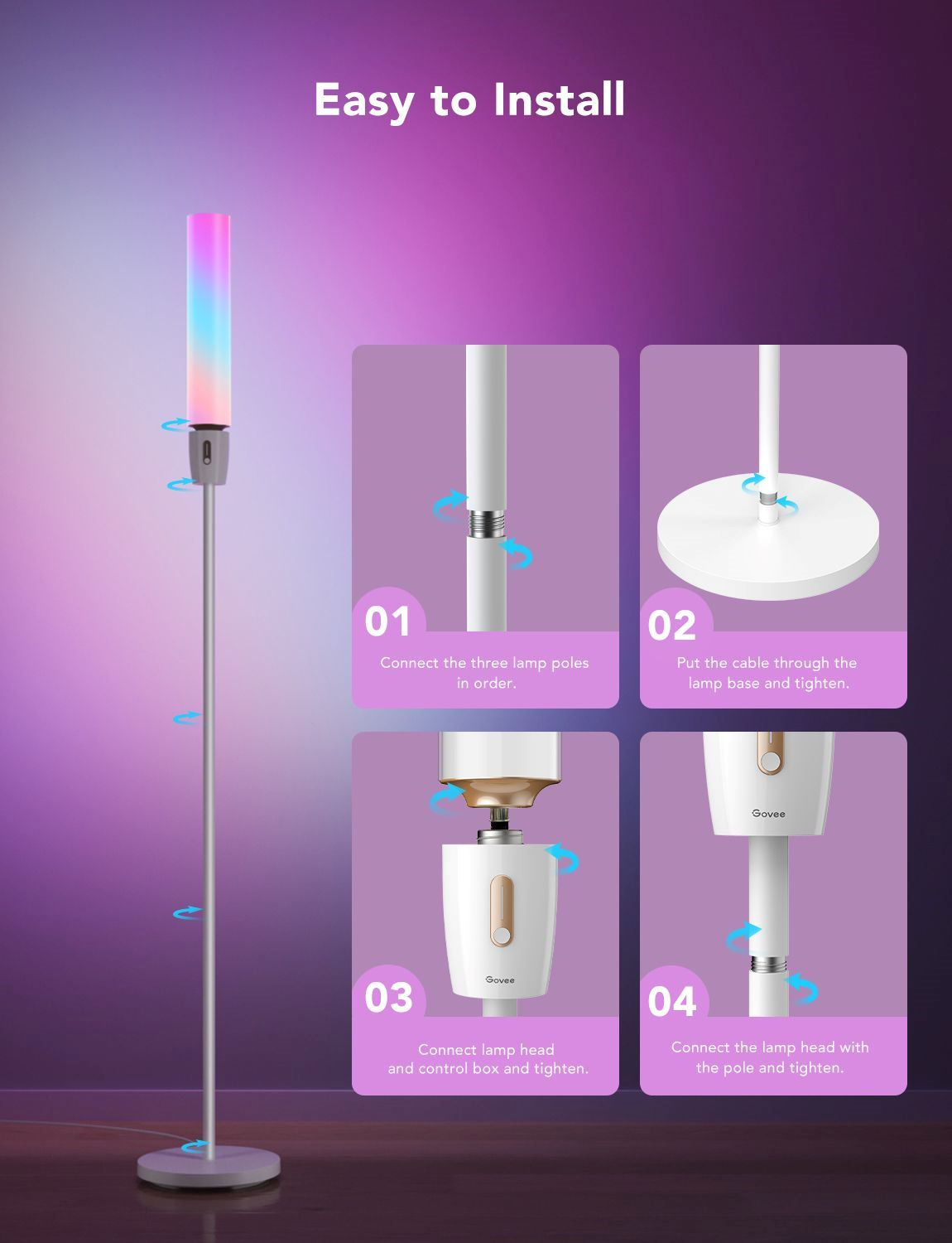 Govee Floor Lamp ponúka milióny farieb a 64 prednastavených scénových režimov v aplikácii Govee Home. Preskúmajte DIY režim a vytvorte si paletu priamo pre vás a váš interiér. Vďaka aplikácii môžete scény automatizovať a nastaviť aj časový rozvrh.