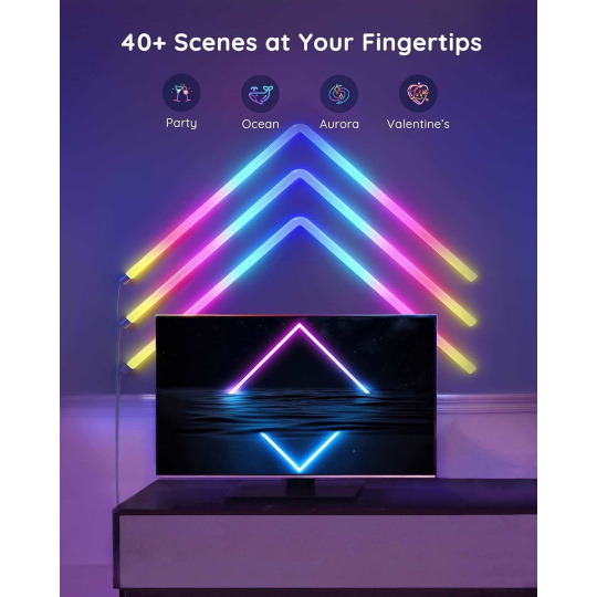 Govee Glide ponúka viac ako 40 rôznych režimov pre dokonalé vyladenie svetelnej atmosféry. Technológia Govee RGBIC dokáže zobraziť až 57 farieb naraz z celkového rozsahu 16 miliónov farieb s intenzitou 1-100%. Môže sa tiež pochváliť životnosťou až 50 000 hodín.