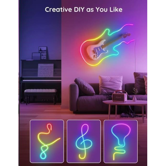 Govee Neon Smart ponúka viac ako 64 rôznych režimov pre dokonalé naladenie svetelnej atmosféry. Govee technológia RGBIC dokáže zobraziť až 57 farieb naraz z celej škály 16 miliónov farieb pri intenzite 1-100%. Môže sa tiež pochváliť životnosťou až 50.000 hodín.