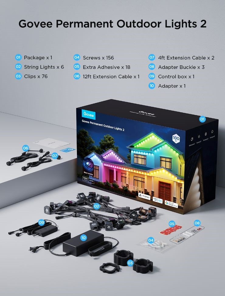 Tieto svetlá sú vybavené chytrými funkciami, ktoré umožňujú jednoduché prispôsobenie a ovládanie. Pomocou aplikácie Govee môžete ľahko nastaviť rôzne farby, prechodové efekty a svetelné vzory, čím si vytvoríte jedinečnú atmosféru pre každú príležitosť. Nezáleží na tom, či pripravujete oslavu, sviatočnú výzdobu, alebo si len chcete užiť príjemný večerný posed s priateľmi – trvalé vonkajšie svetlá Govee vám umožnia prispôsobiť osvetlenie presne podľa vašich predstáv. Vďaka kompatibilite s hlasovými asistentmi, ako je Google Assistant, Siri alebo Alexa, môžete svetlá ovládať aj hlasovými príkazmi, čo prináša ešte väčší komfort. Navyše ich môžete vďaka protokolu Matter zaradiť do takmer všetkých smart home systémov vrátane Apple Homekitu.