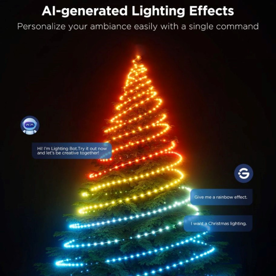 Govee Vianočný svetelný reťazec prináša inovatívnu možnosť generovať farby a efekty pomocou umelej inteligencie, čo užívateľom umožňuje ľahko vytvárať jedinečné a personalizované osvetlenie. Stačí zadať požadované farby alebo nahrať obrázok a lampa automaticky vygeneruje zodpovedajúce farebné schéma a efekty, ktoré ladia s vašou predstavou. Táto technológia otvára nekonečné možnosti pre kreativitu, či už plánujete vianočnú výzdobu, oslavu alebo chcete osviežiť každodennú atmosféru vo svojom domove. S možnosťou AI generovania farieb a efektov sa vaše osvetlenie stáva živým a interaktívnym prvkom vášho priestoru.