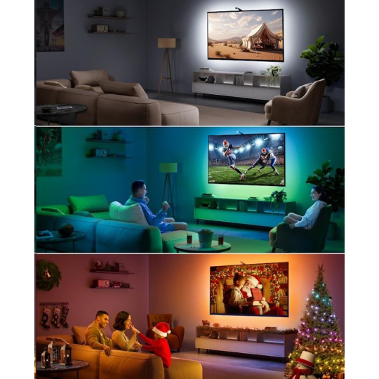 Vďaka RGB páske, ktorý obsahuje aj bielu diódu, dosahuje Backlight 3 Lite maximálneho jasu, kontrastu a vernosti farieb. Páska tak doslova rozšíri uhlopriečku vašej televízie a môžete si dopriať atmosféru kina u vás doma.