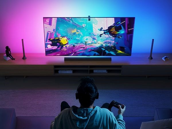 Súprava osvetlenia sa spolieha na fotoaparát, ktorý presne reprodukuje farby na obrazovke. To je teraz rozšírené o korekciu skreslenia, takže podsvietenie presne kopíruje farby na obrazovke a vytvára tak pohlcujúci vizuálny zážitok. Kamera je umiestnená nad televízorom, aby bola kompatibilná so soundbarmi a prispôsobila sa aj modelom s ultratenkou obrazovkou.