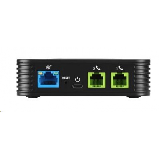 HT802 je analógový adaptér (ATA) s 2x portom FXS na pripojenie dvoch analógových telefónov k sieti VoIP.