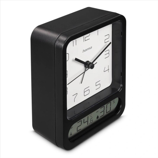 Hama Pag, budík so zobrazením teploty a vlhkosti vzduchu, tichý chod, čierny