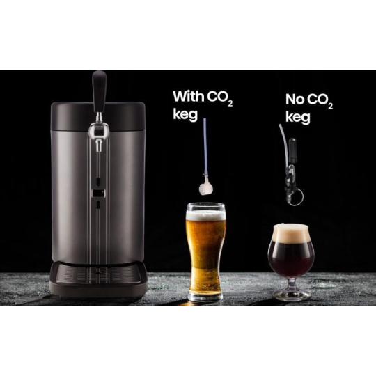 Prepnite medzi čepovaním s CO2 alebo bez. Extra systém CO2 je vhodný pre bežné 5l sudy s pivom. V prípade, že vypnete CO2, nedostane sa do vášho nápoja žiadny kyslík, čím predĺžite životnosť nápoja.