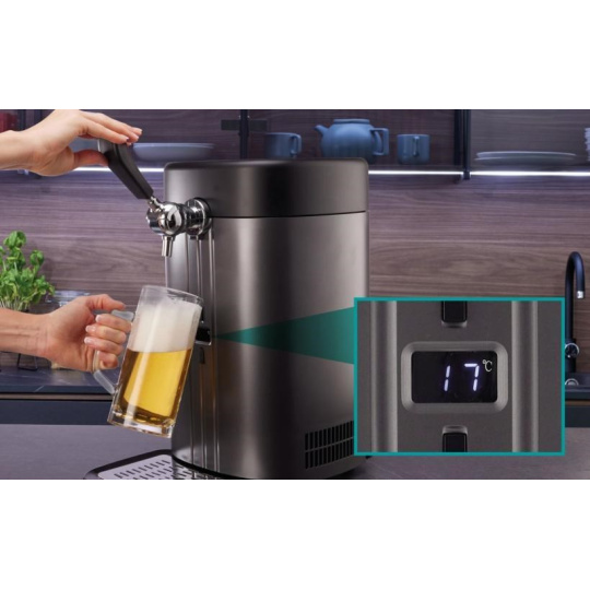 Ovládanie výčepného zariadenia HISENSE je extrémne jednoduché. Zvladne to doslova každý. Vložte 5l sud do systému, pripojte kohútik, zatvorte veko a môžete čepovať. Sud je možné predchladenie alebo nechať túto prácu na výčepnom zariadení.