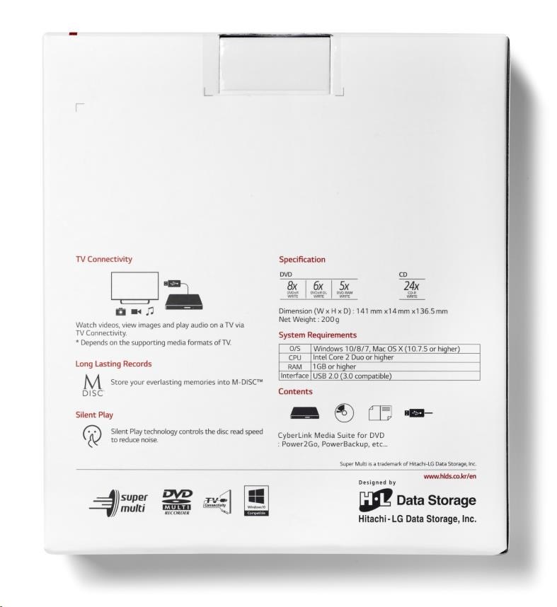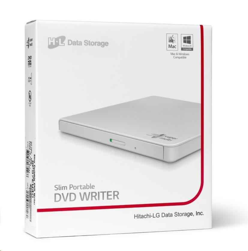 HITACHI LG - externá mechanika DVD-W/CD-RW/DVD±R/±RW/RAM GP57EW40, Slim, biela, krabica+SW