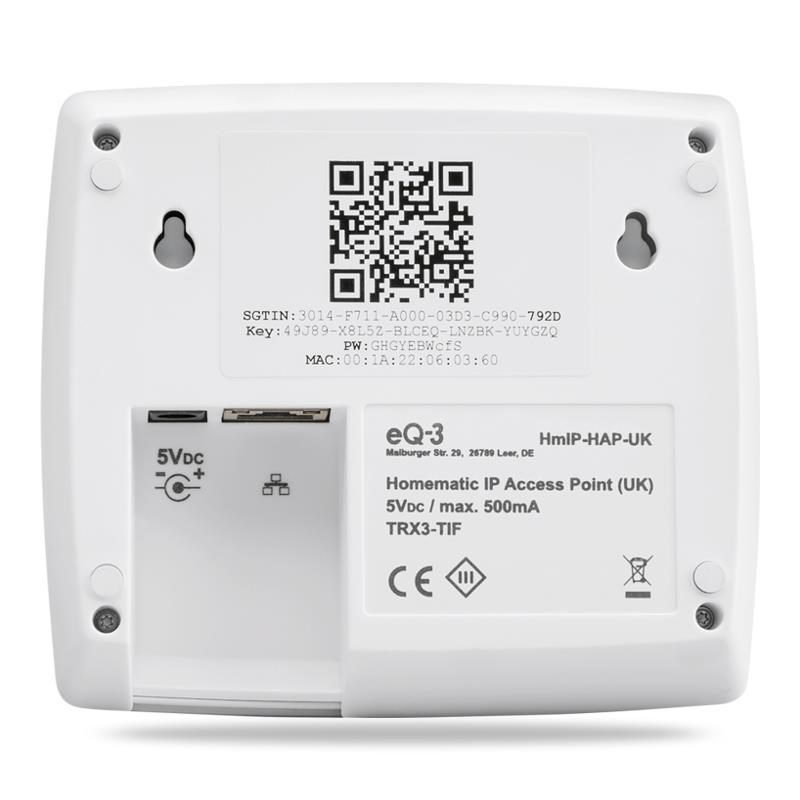 Centrálna jednotka (HmIP-HAP) je pripojená ku štandardnému smerovaču ethernetovým káblom (RJ-45) a slúži ako rozhranie medzi cloudom Homematic IP umiestneným výlučne na serveroch v Nemecku a zariadeniami Homematic IP vo vašej domácnosti.