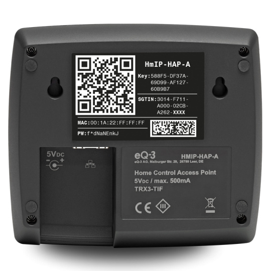 Centrálna jednotka (HmIP-HAP-A) je pripojená ku štandardnému routru ethernetovým káblom (RJ-45) a slúži ako rozhranie medzi cloudom Homematic IP umiestneným výhradne na servery v Nemecku a zariadeniami Homematic IP vo vašej domácnosti.